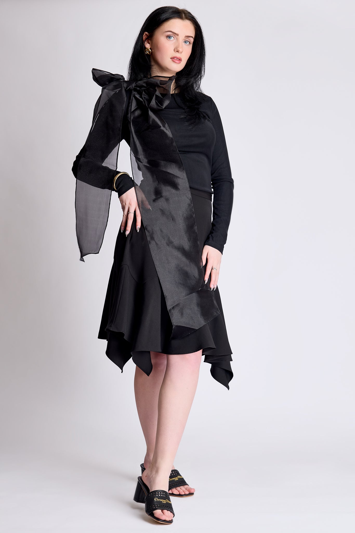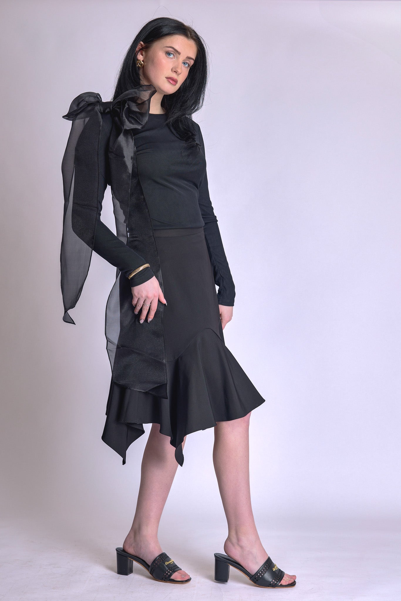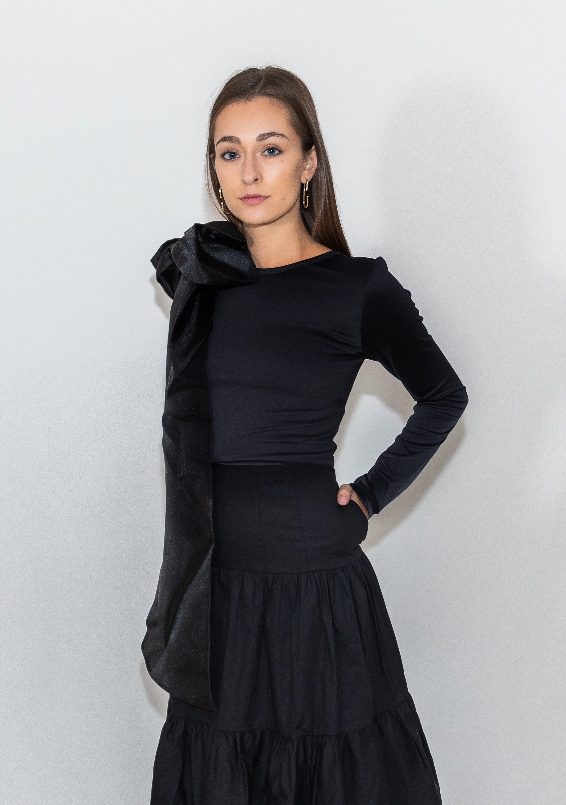Meet the Black Mesh Bow Top, a wardrobe essential that seamlessly blends modern sophistication with timeless femininity. Crafted from soft, stretch mesh and fully lined for the perfect balance of coverage and comfort, it offers a sleek, second-skin feel that’s both breathable and effortlessly chic. The detachable bow on the shoulder adds a bold, statement touch—wear it for a dramatic, fashion-forward look or remove it for a sleek, minimal aesthetic. Designed for versatility, it layers beautifully under a dress, pairs effortlessly with a tailored blazer, or stands out on its own with your favorite skirt. The soft, stretchy mesh flatters without feeling restrictive, making it as comfortable as it is stylish. Whether transitioning from a polished daytime look to an elevated evening ensemble, the Black Mesh Bow Top is the perfect piece to complement your style—whether as the supporting accent or the main character in your outfit.