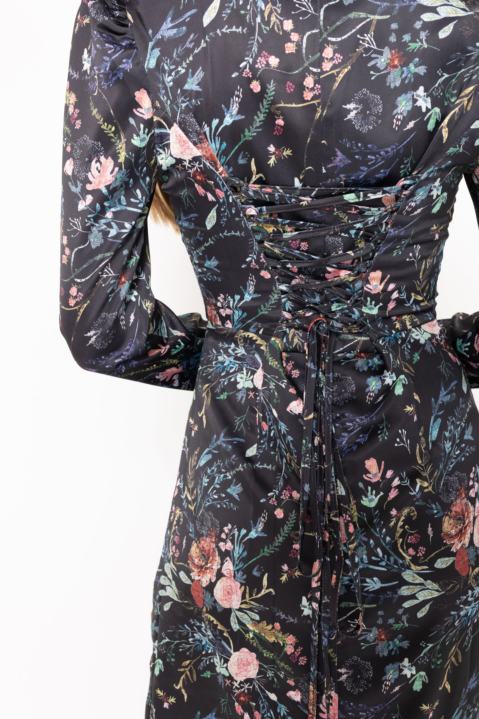 Introducing the Elizabeth Dress – a mesmerizing midi that redefines elegance. With a square neck and charming puffed shoulders, this dress boasts a delicate floral print that exudes timeless grace. But the true showstopper? It's all in the back. Prepare to be amazed by the corset-like design, featuring a mesmerizing criss-cross pattern that effortlessly tailors the dress to your unique shape, as though it were expertly crafted just for you. Get ready to turn heads and steal hearts, as the Elizabeth Dress captures the essence of individuality and sophistication in one stunning ensemble.