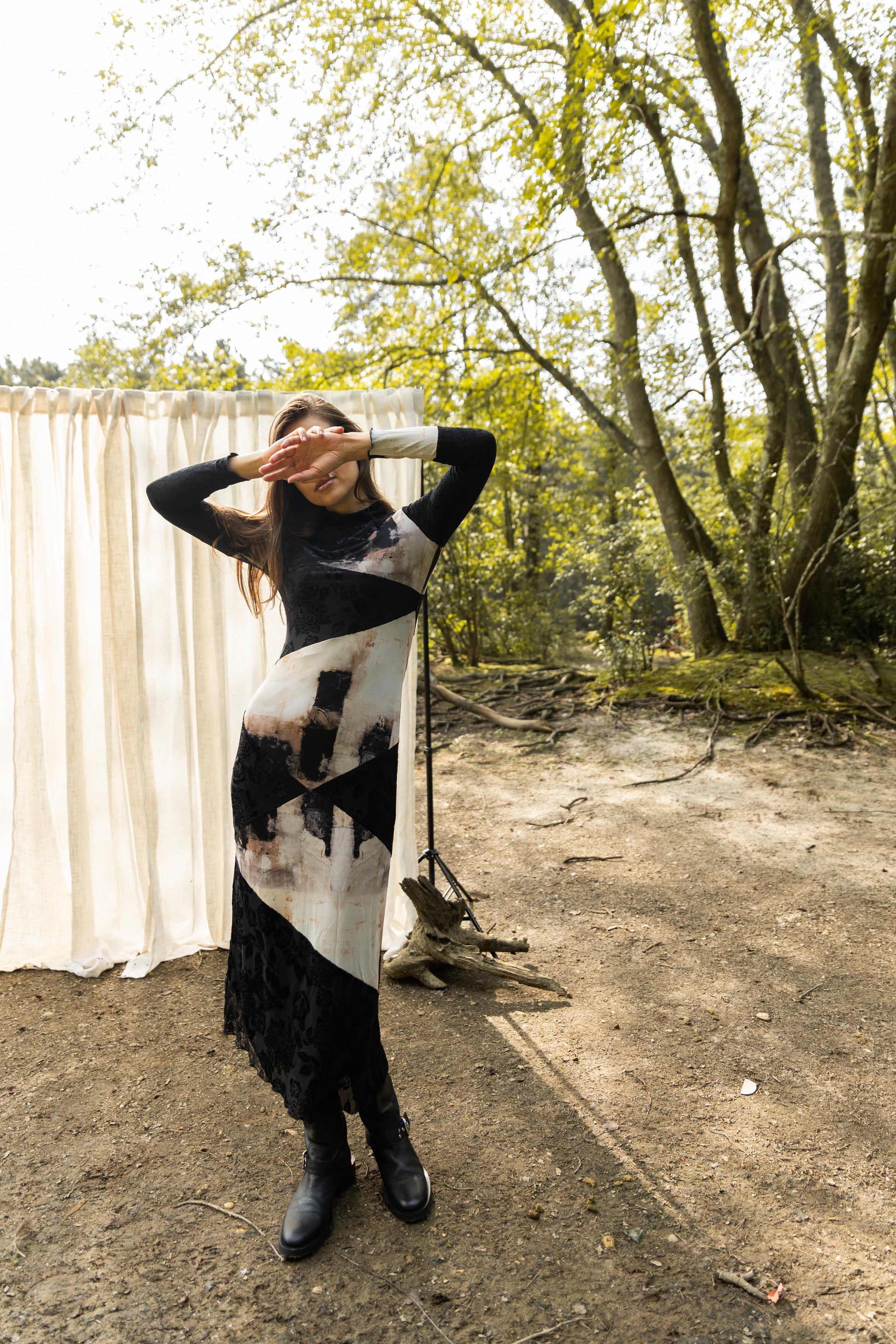 Unveil unparalleled sophistication with our Mesh Patchwork Dress, a masterful creation designed for the fashion-forward. This intricate dress boasts a complex patchwork of luxurious lace fabric, beautifully printed mesh in rich browns and beiges, and floral mesh burnout details, creating a unique and detailed design. The statement zipper down the back and high-low hem add a touch of modern elegance to the maxi silhouette. Crafted for ultimate comfort, the Mesh Patchwork Dress is perfect for making a stunning impression at any upscale event or special occasion. Elevate your wardrobe with this exquisite piece, combining unparalleled craftsmanship with effortless style. Shop now to experience the exceptional luxury and intricate beauty of the Mesh Patchwork Dress.