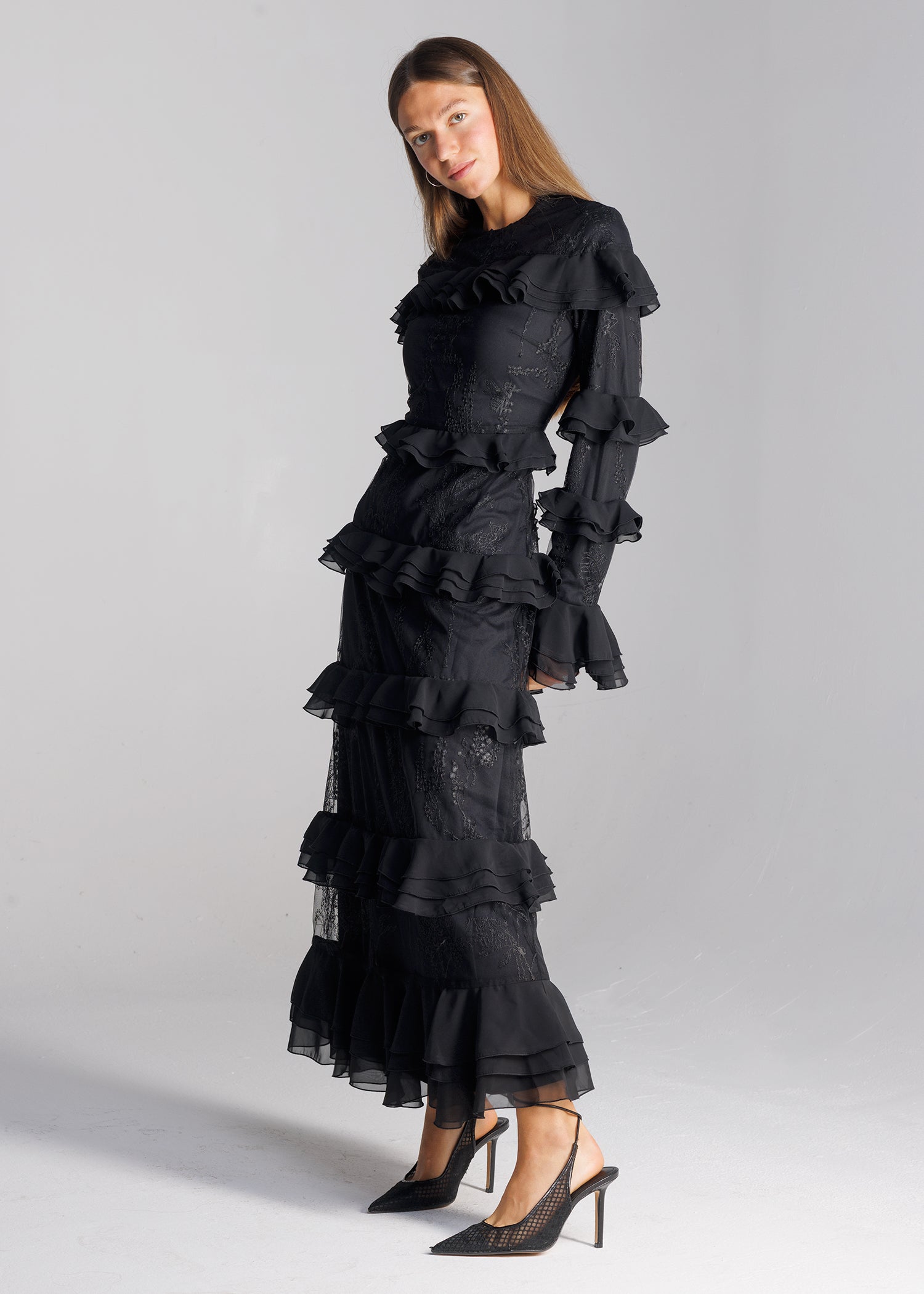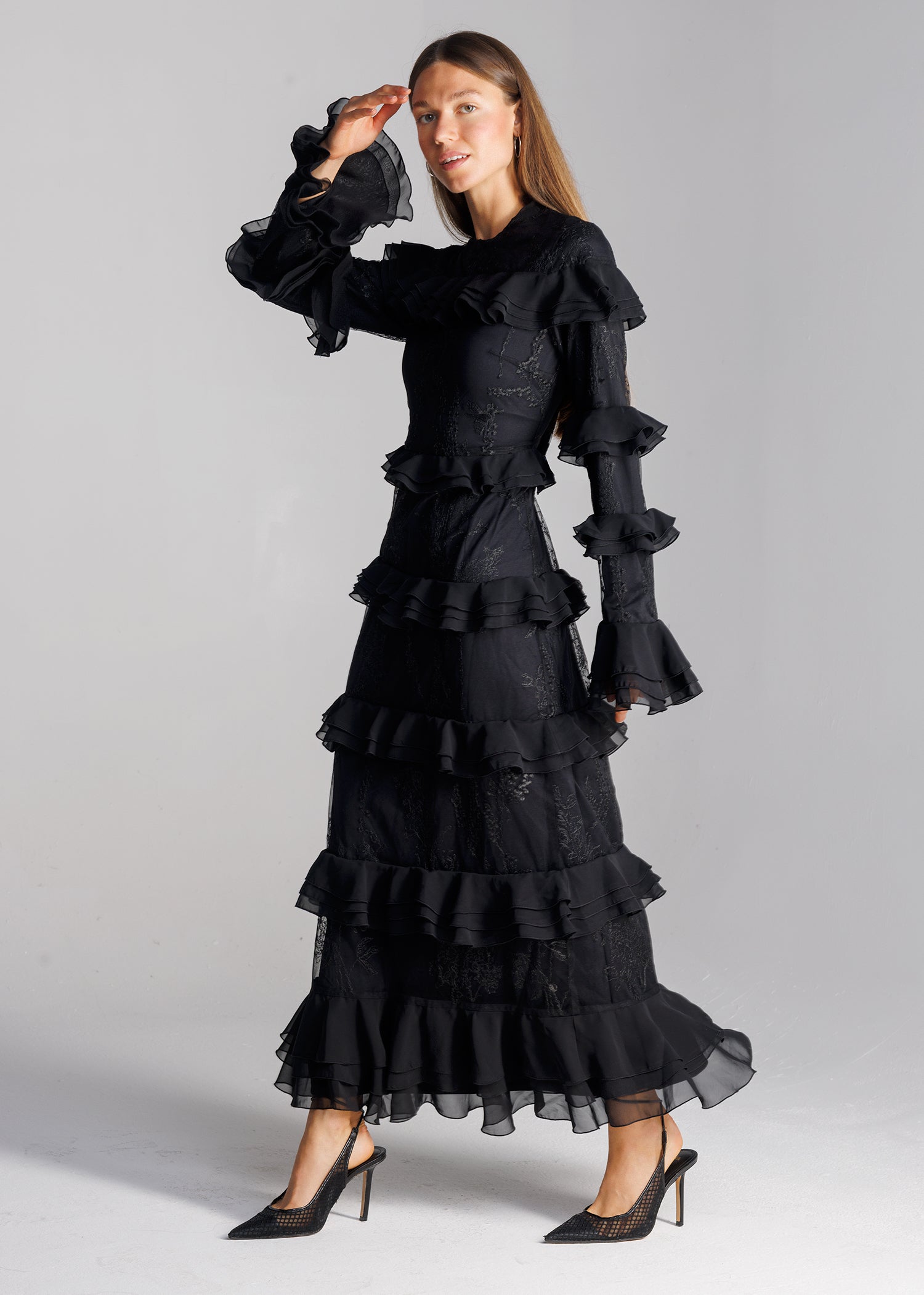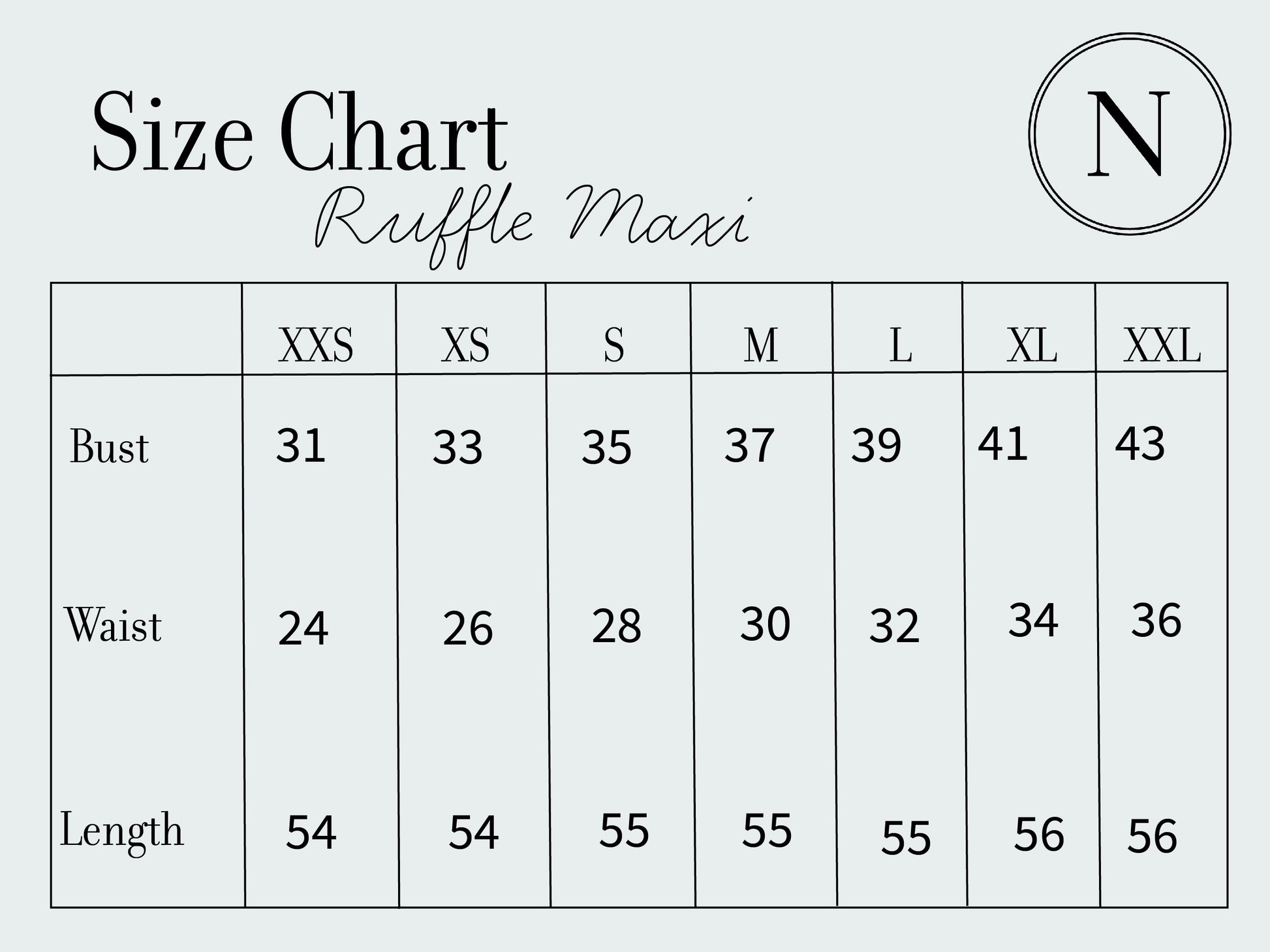 Indulge in the timeless charm of the Ruffle Maxi, where layers of ruffles meet structured sophistication. Whether it's a wedding, a bar mitzvah, an engagement, or any special event, this gown is designed to make you feel both refined and exceptionally comfortable. Elevate your wardrobe with a piece that transcends occasions, ensuring you stand out with grace and style. Shop now and embrace the epitome of modern elegance.