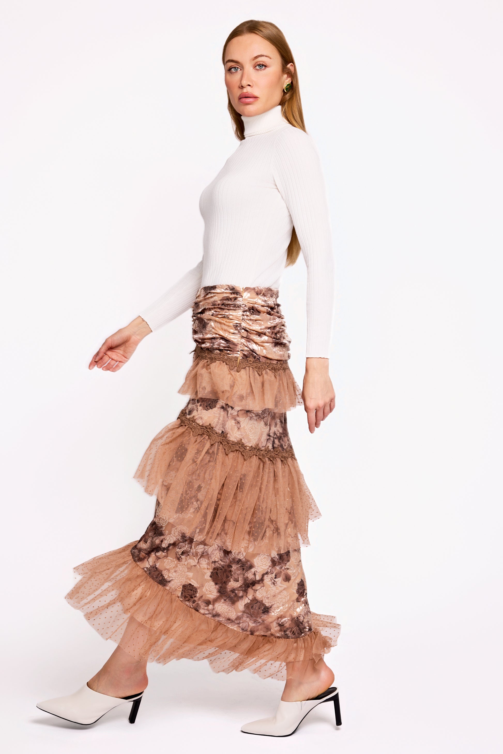 Rooted in femininity, elevated in tone—this is the Flora Skirt at its most timeless.