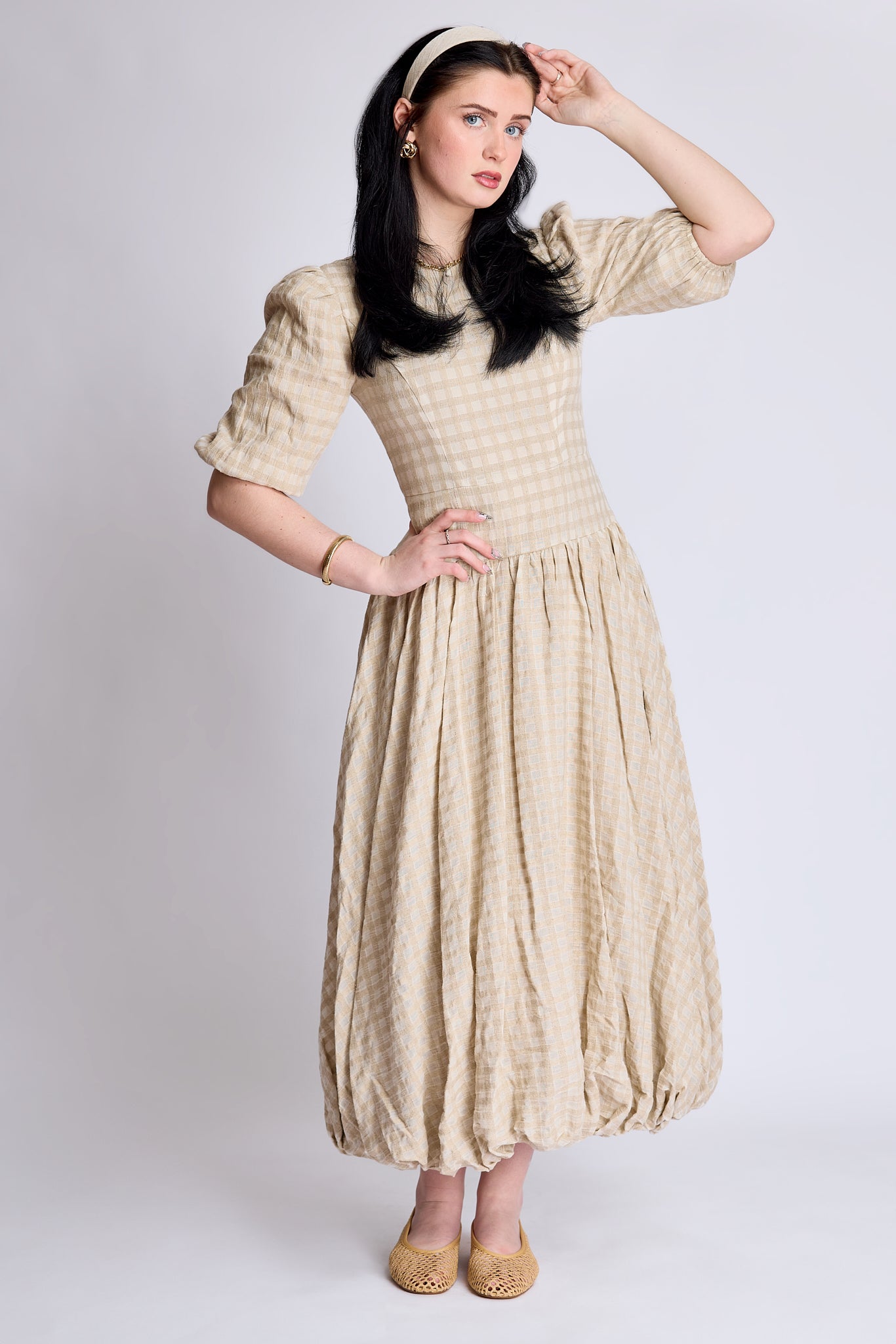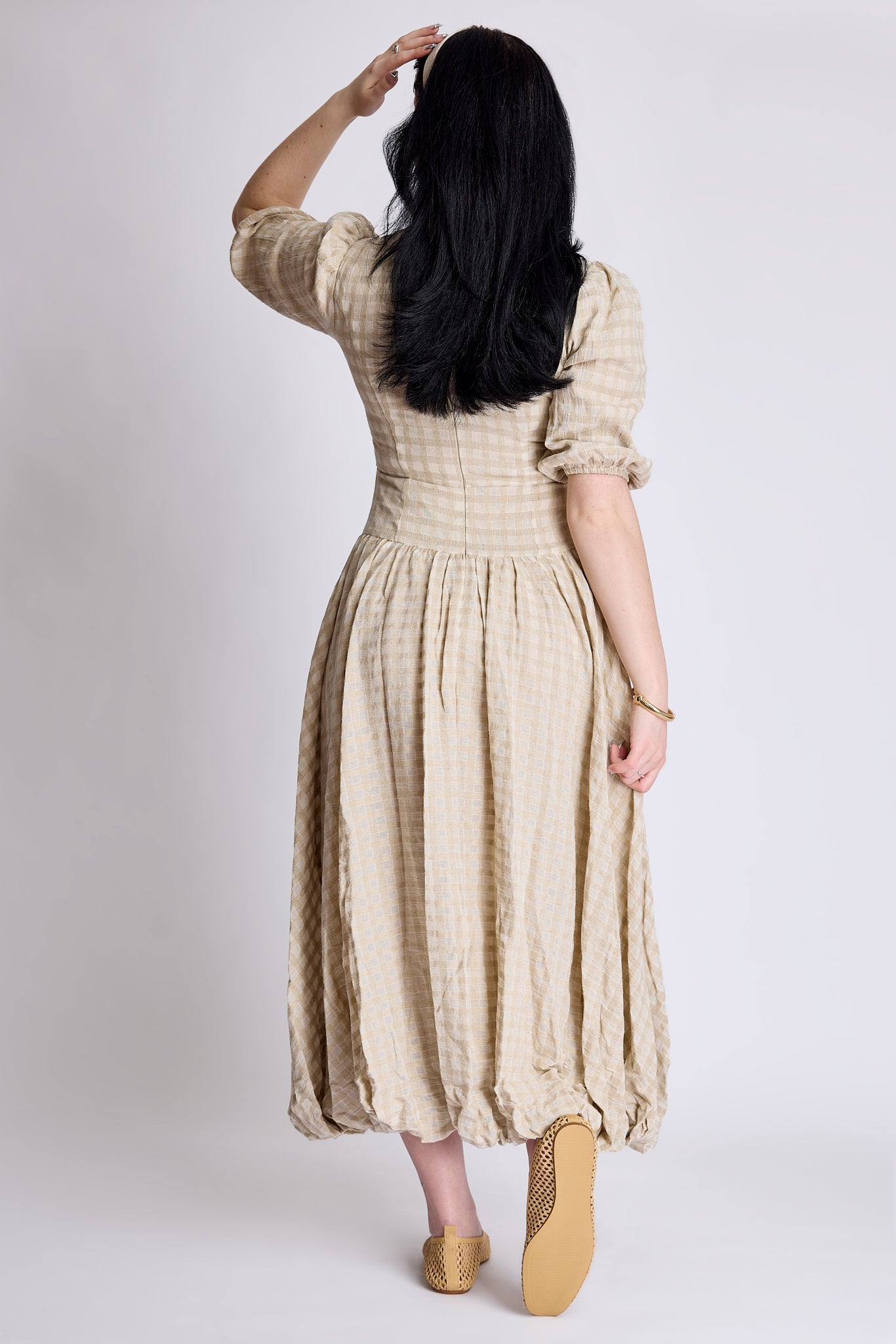 Where timeless architecture meets modern grace, The Milano Dress is a tribute to refined simplicity. Designed in warm mocha tones with a delicate geometric layout, this piece reflects the charm of Milanâs ancient streets while the flowing bubble hem captures the ease of a graceful lifestyle.