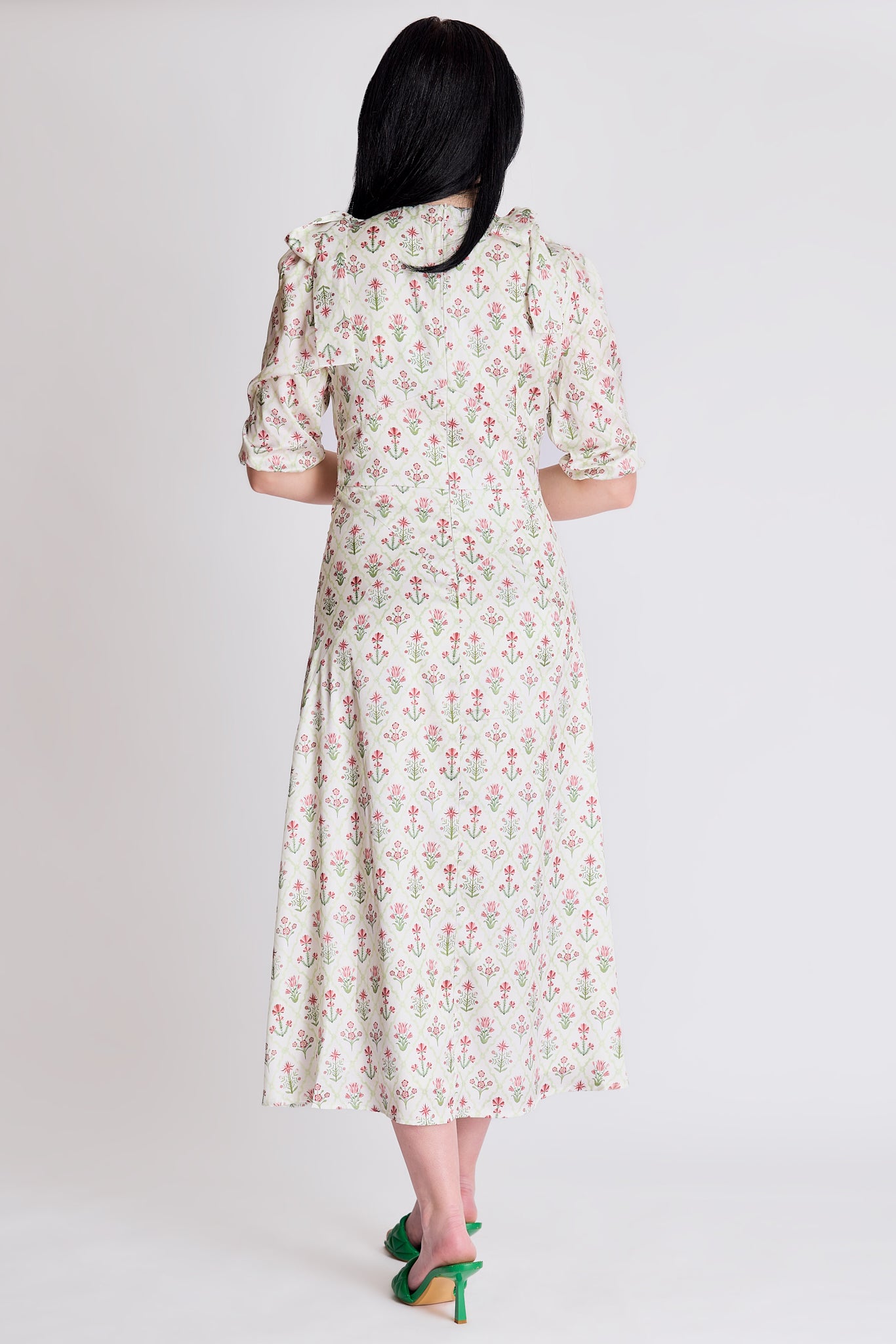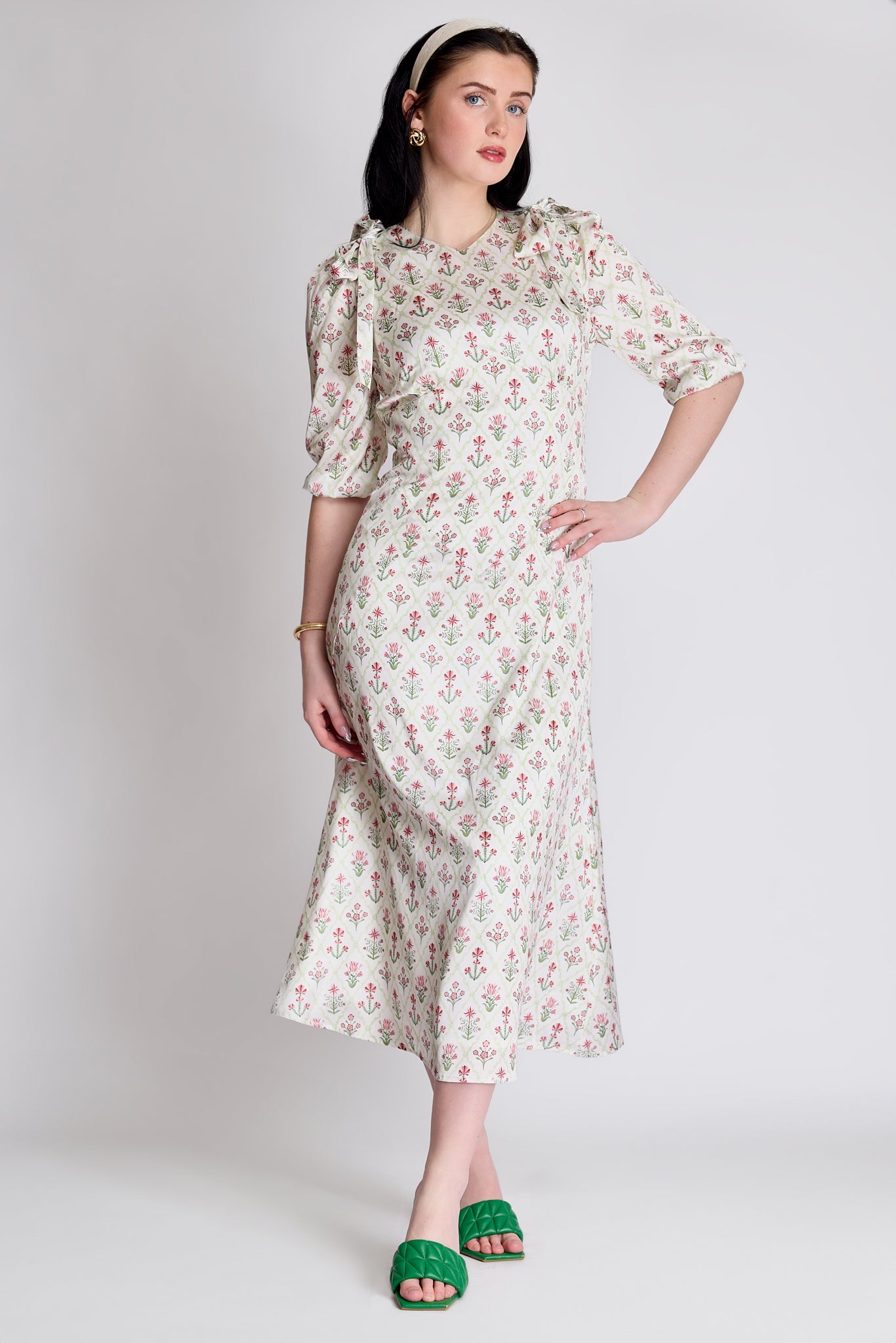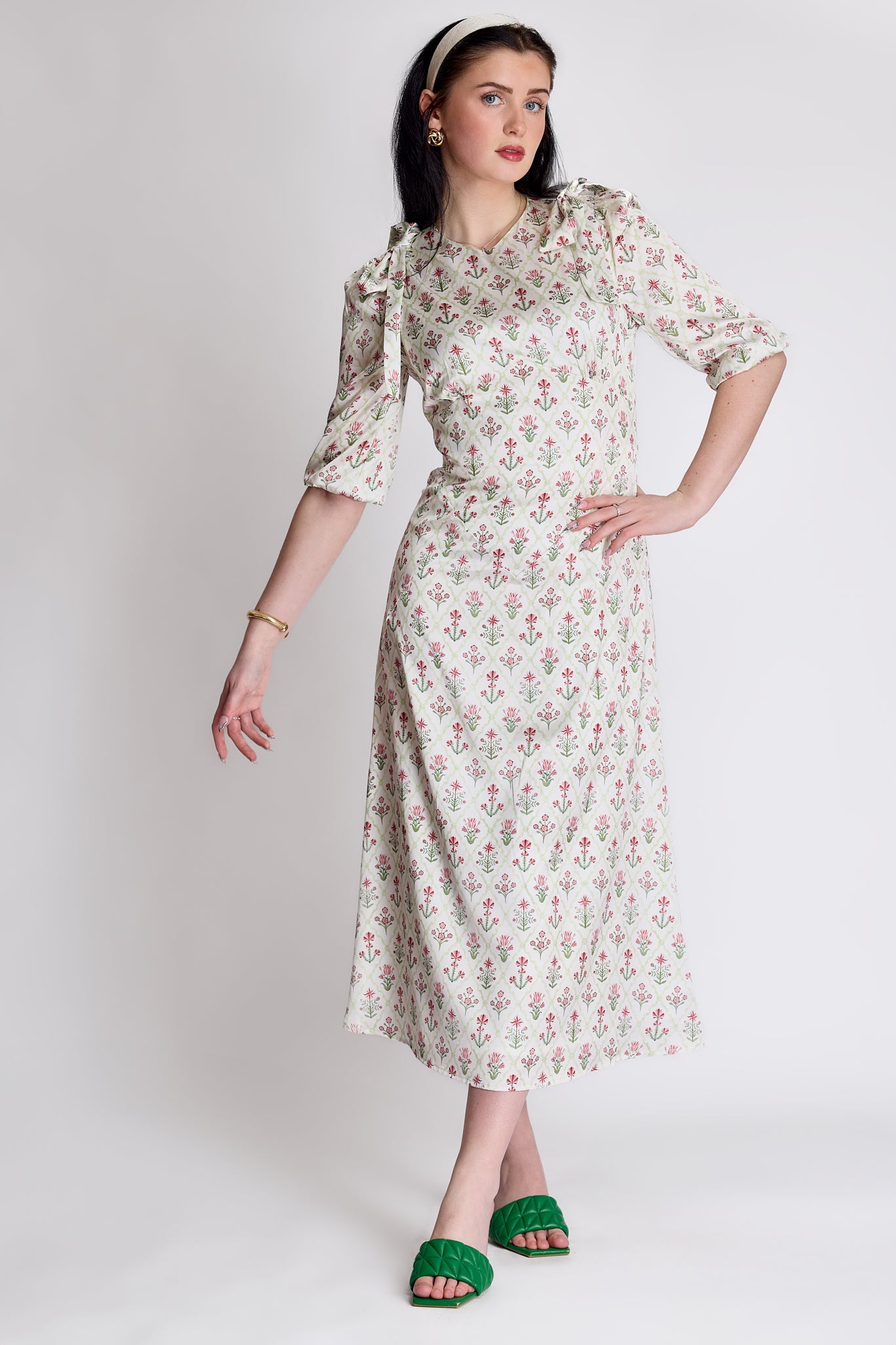 Thereās something undeniably alluring about the quiet luxury of a slow morningāthe way sunlight dances on cobblestone streets or the effortless beauty of a seaside escape. The Portofino Dress embodies that feeling, a perfect balance of grace and ease, where every detail is thoughtfully designed to move with you. Its ivory satin base shimmers with a soft glow, while a warm burgundy floral geometric print evokes the artistry of Italian tilework. The midi-length silhouette skims the body in all the right places, flowing beautifully with every step, while 3/4-length sleeves add an understated refinement. Delicate bows at the shoulders whisper of romanceāthe kind that lingers long after youāve left the room. Flattering, feminine, and effortlessly elegant, The Portofino Dress is made for the moments that matter, whether itās a dinner, a celebration, or simply a day that deserves something special. Slip into it, and let every step feel like a stroll through an Italian piazza.