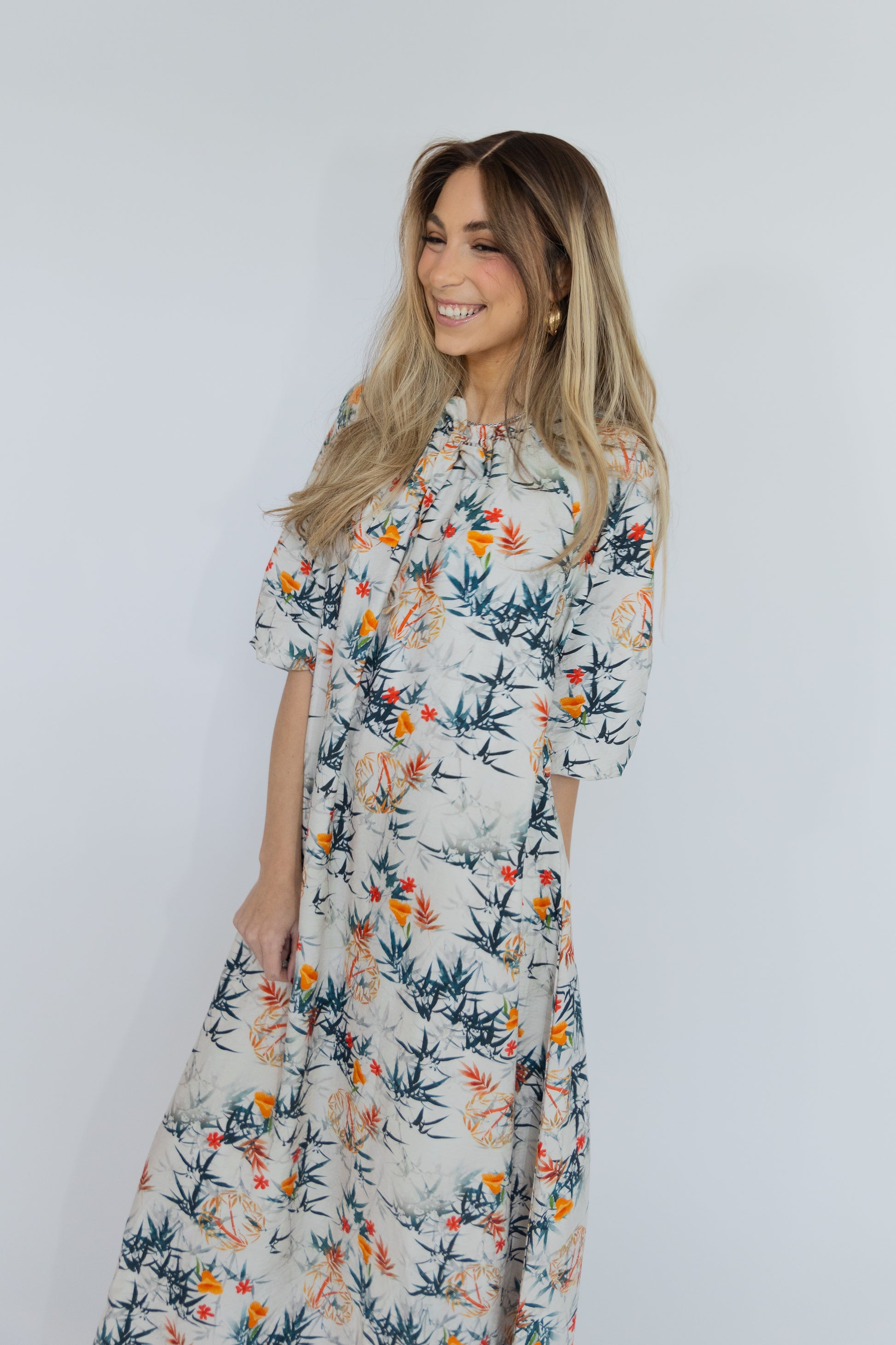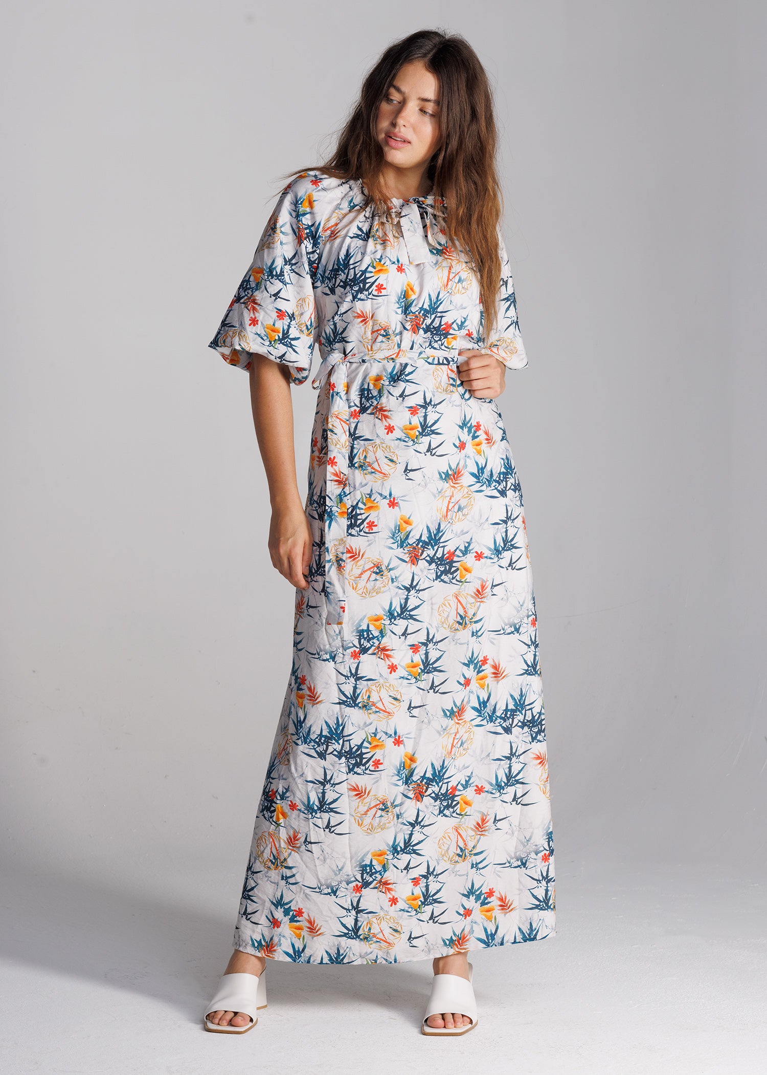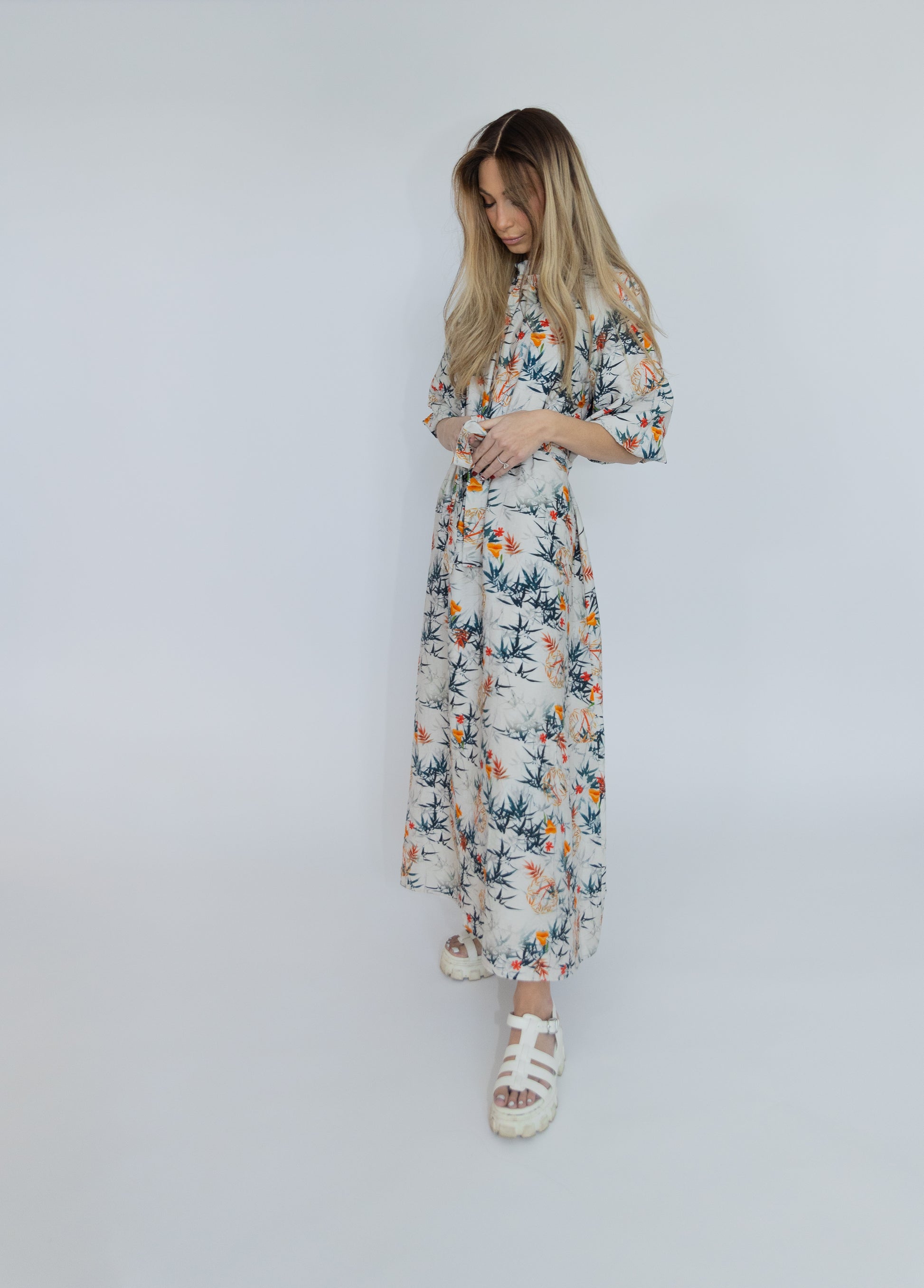 Designed for both comfort and sophistication, the dress includes a complimentary belt to define the waist for those seeking a more tailored look. Its maxi length adds a touch of glamour, making it a versatile choice for any occasion – from leisurely beach outings to upscale soirées. Immerse yourself in the luxury of the Tropical Dress, where the allure of the tropics meets high fashion. Elevate your wardrobe and embrace the perfect blend of tropical charm and refined style. Shop now and make a statement wherever you go with this timeless piece.